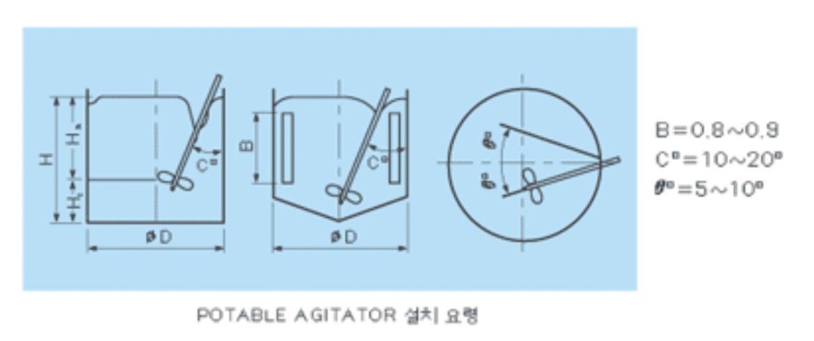 교반효율을 좌우하는 요수중의 하나가 교반기의 설치 위치입니다.