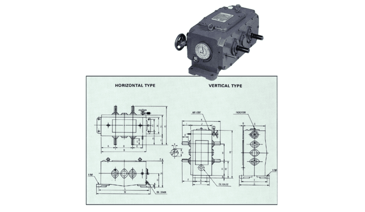 입력 동력 전달은 기어나 V 벨트 등의 일반적인 방법은 모두 가능하고 측압하중이 큰 것은 별도의 스러스크 베어링을 설치하십시오.