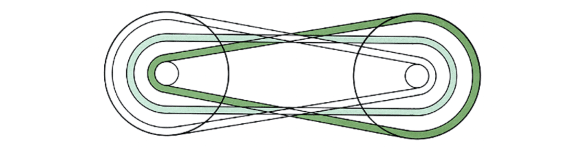 아래 그림과 같이 입력축과 출력축에 각각 2개의 BEVEL, DISC가 평행을 이루며 위치하고 있어 이 2쌍의 DISC를 특수 SLATS CHAIN으로 연결되어 있습니다.
