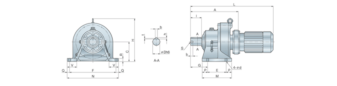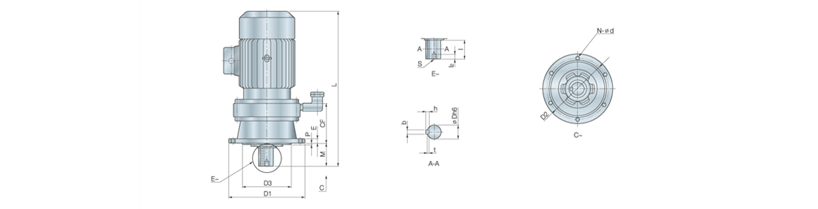 극수 | A | C | D | E | F | G | H | M | N | P | Q | R | S | V | I | I. | d | b | h | t | L | J | DM | 중량 (KG) |