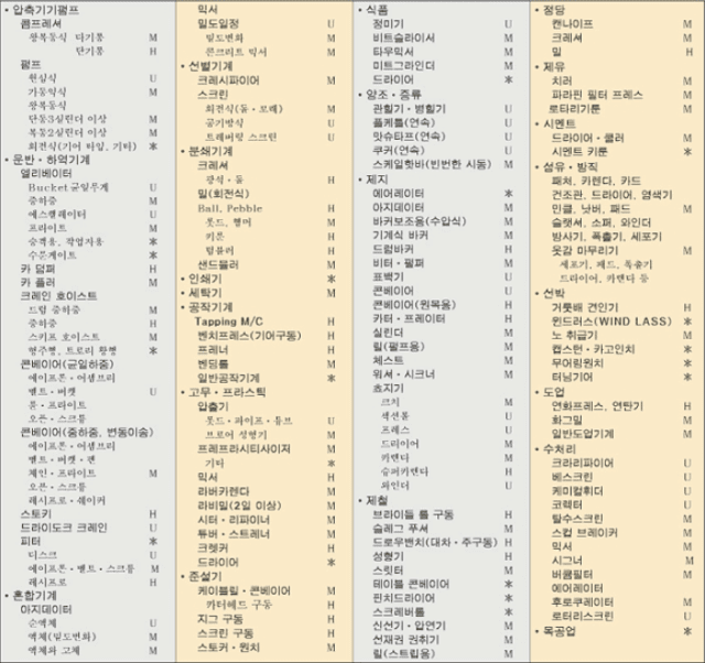 기계별 부하성질표