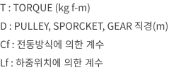 *예 ) 30kg f-m TORQUE의 감속기축에 100mm 경의 GEAR가 장치 되었다면