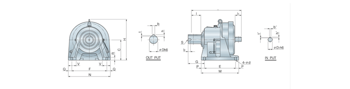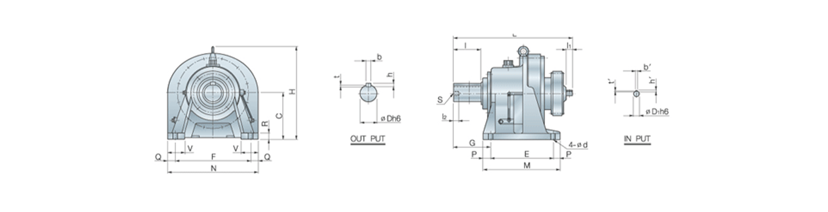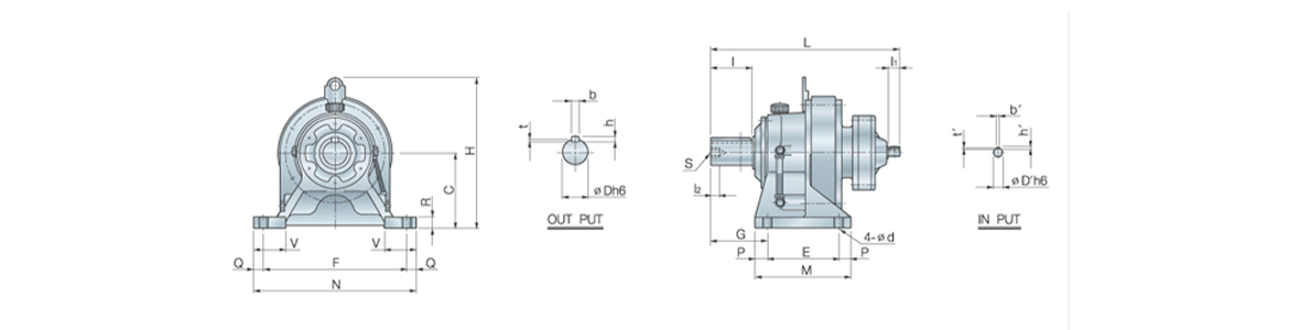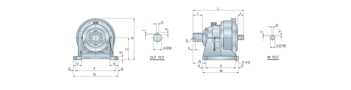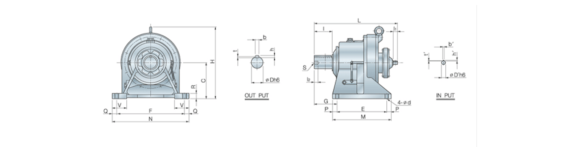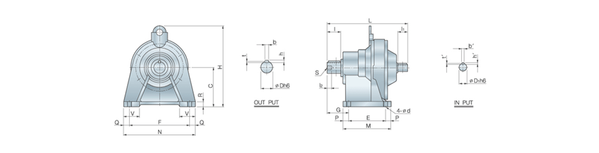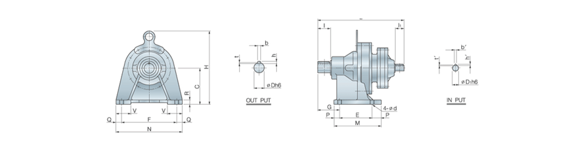 | 형식 | C | D | D' | E | F | G | H | M | N | P | Q | R | V | I | I. | d | b | h | t | b' | h' | t' | L | 중량 |